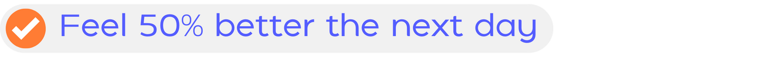 In a human study conducted for our granted patent, users of NextDay Cheers felt an average of 50%+ better the next day across 8 typical effects. These results give us confidence that you’ll wake up feeling at least 50% better — or your money back.